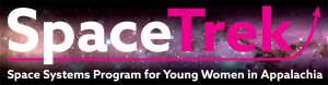 The image is the SpaceTrek Program logo with the tagline, "Space Systems Program for Young Women in Appalachia."